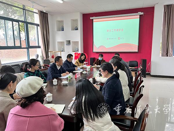 2022年3月1日、2日,校党委副书记陈志军、招生就业处处长冉久飞、副处长田力一行,分别前往美术学院、经济与管理学院、新闻与传媒学院调研指导就业工作,开展就业工作座谈会。各学院领导参加会议并积极分析问题、汇报学院就业情况,共商学生就业工作问题。