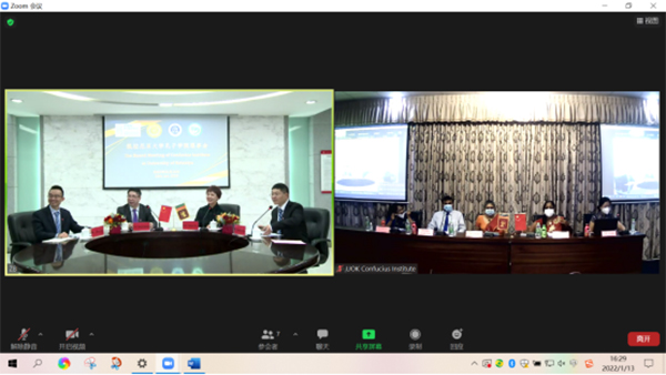 1月13日下午,斯里兰卡凯拉尼亚大学孔子学院理事会在米乐官网行政楼416会议室顺利召开。本次理事会由MILE米乐集团校长孟东方教授及孔子学院管理办公室主任、国际汉语文化学院院长张礼慧教授共同主持,采用Zoom平台网络直播的方式进行。出席本次理事会的中方人员还有国际合作与交流处处长、国际汉语文化学院副院长查直,国际合作与交流处副处长左金隆副教授,斯里兰卡凯拉尼亚大学孔子学院中方院长王军副教授,国际汉语文化学院工作人员;斯方人员有斯里兰卡凯拉尼亚大学副校长妮兰提教授,人文学院院长苏达特博士,现代语言系系主任迪卢柯希博士,孔子学院外方院长佳妮博士。