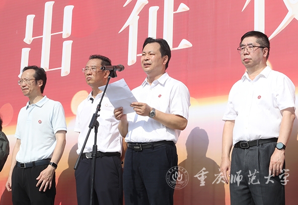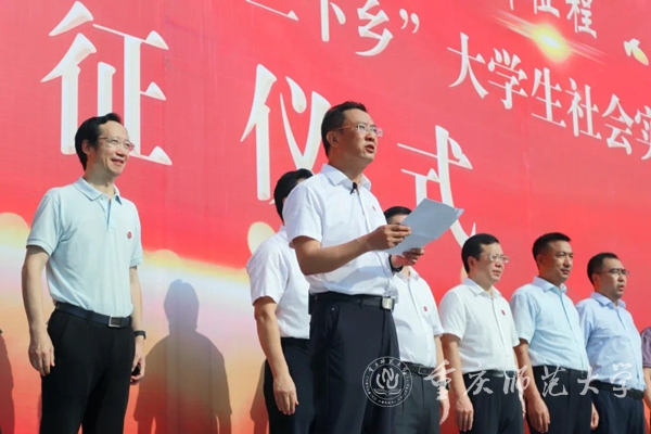 曾礼书记代表学校党政,向即将奔赴各地参加社会实践的全体师生表示亲切问候和良好祝愿,向精心组织、周密部署本次活动的相关职能部门表示衷心感谢。他强调,在本次“三下乡”社会实践活动中要深入学习贯彻习近平总书记在中国人民大学考察调研时的重要讲话,并向同学们提出四点要求:一是做到用脚步丈量祖国大地。希望新时代大学生在读好书本的同时,还要利用各种机会,走出校门、走向社会,深入基层、深入生活、深入民众百姓,在新时代社会大课堂中认识新时代的伟大成就和伟大变革,了解国情民意,进而坚定理想、淬炼意志、增长才干。二是做到用眼睛发现中国精神。希望新时代大学生结合社会实践的契机,用眼睛观察中国发展、发现中国精神,中国精神是可发现、可感知的,是增强做中国人的志气、骨气、底气的“根”与“魂”,要自觉当中国精神的信仰者、传播者和践行者。三是做到用耳朵倾听人民呼声。希望新时代大学生要厚植人民情怀,站稳人民立场,主动深入人民群众当中,拜人民群众为师,发现蕴藏在人民群众中的无穷智慧和无尽力量,用耳朵倾听人民的呼声,同人民一起奋斗,在为人民利益的不懈奋斗中书写壮丽的青春华章。四是用内心感应时代脉搏。希望新时代大学生用内心感应时代脉搏,从沟通历史与现实、贯通理论与实践、关联国内与国际等多重维度,深刻感悟新时代党和国家事业取得的历史性成就、发生的历史性变革,深刻理解中华民族伟大复兴的历史进程不可逆转,深刻认识“时代的责任赋予青年,时代的光荣属于青年”,锤炼过硬本领,担当时代使命,在青春的赛道上争取跑出当代青年的最好成绩。曾礼书记祝愿广大重师青年在这堂与现实相结合的“大思政课”中受教育、长才干、作贡献!