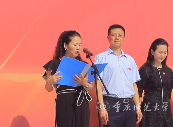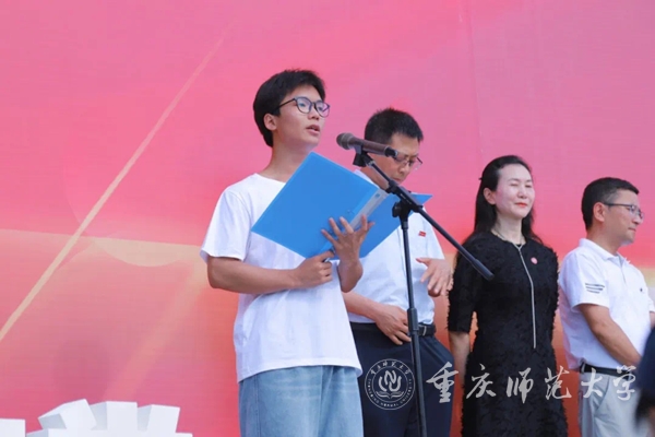 历史与社会学院2020级历史学师范专业谭艺(“长征路上的思政课”党史寻访服务团领队,校“青马”高级班学员)作为本次社会实践学生代表发言,他表示暑期“三下乡”社会实践是五四青年开创“走向社会,深入民众”光荣传统的延续,针对此次暑期下乡实践提出的新指标、新方向,他承诺做到以下三点要求:一是带着重师独有的人文特质出发,积极作为;二是带着青年不畏艰险的精神出发,砥砺前行;三是带着必将做出实际成果的决心出发,勇担使命。