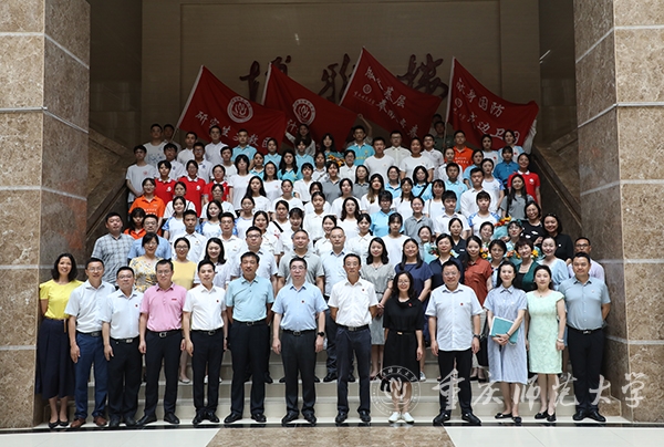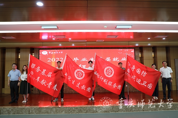 党委副书记陈志军分别为2022届研究生支教团、西部计划服务团、“服务基层 奉献青春”毕业生、“献身国防 戍边卫国”毕业生授旗。