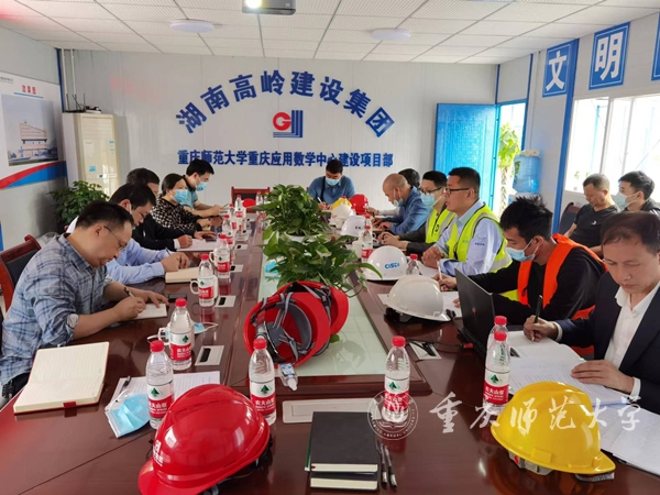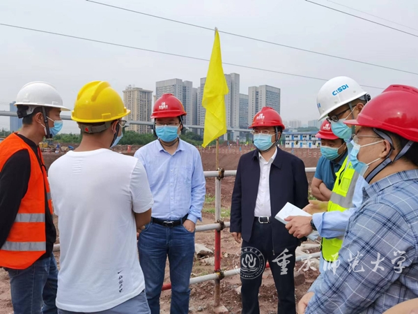 5月17日上午,重庆市教委基建后勤处处长陈明政一行到米乐官网大学城校区重庆应用数学中心建设项目施工现场检查工作。在副校长孟小军等人陪同下,市教委一行察看了项目施工现场以及临时办公区、生活区等,并在现场召开专题工作会。
