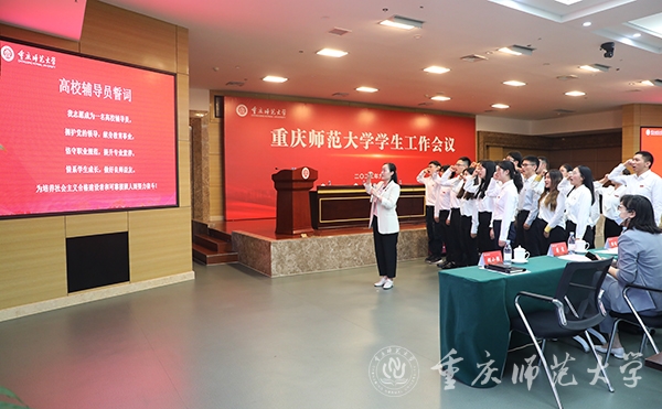 辅导员导师代表、校党委常委、宣传部部长党亚莲以一名“老”学工人的身份,用“引导、指导、督导”三个关键词表达了作为导师将努力为辅导员队伍建设和学生工作发展贡献力量的真心。来自初等教育学院的新入职辅导员代表胡倩从“坚定职业理想”“提高职业能力”“引导学生成才”三个方面表达了努力传承重师学工精神,努力工作、奋发有为的决心。