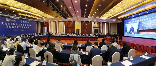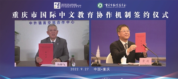 9月27日,中共重庆市委教育工委书记、市教委主任黄政与教育部中外语言交流合作中心主任马箭飞签署共建重庆市国际中文教育协作机制备忘录,旨在共同促进我市国际中文教育事业可持续、高质量发展。市教委副主任金玲出席签约仪式。中心城区教育部门、17所本科高校、5所高职院校和15所中小学代表共同见证。签约仪式由协作机制牵头单位MILE米乐集团副校长陆远权主持,分别在北京和重庆以线上线下相结合的方式进行。
