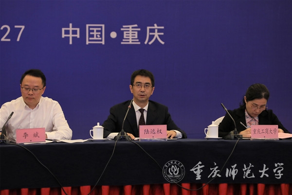 签约仪式结束后,与会人员围绕国际中文教育面临的新形势,以及如何高质量发挥重庆市国际中文教育协作机制的作用,推动国际中文教育创新发展等议题进行了交流研讨。陆远权副校长作为协作机制牵头单位代表首先在研讨会上发言。陆远权指出,合力打造一个共赢共生的国际中文教育生态圈意义重大,并就协作机制共建提出了三点工作建议:一要不断强化我市国际中文教育协作机制助推教育对外开放的服务能力。二要逐步形成我市国际中文教育协作机制各成员单位间的内部合力。三要积极探索我市与兄弟省市共建区域性的国际中文教育协同机制。