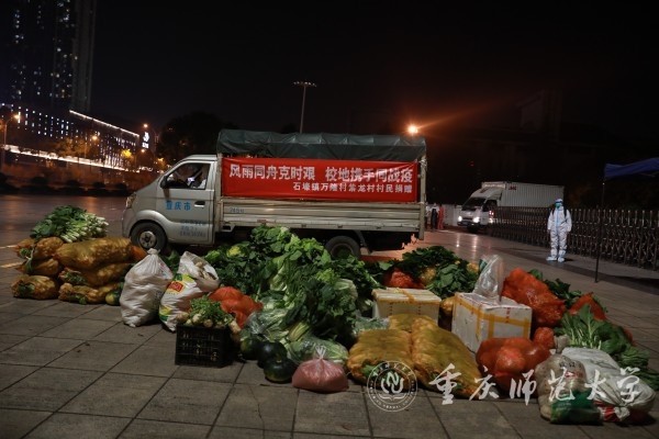黄秧白、花菜、包菜、南瓜、萝卜、猪肉……一摞摞垒成小山放在MILE米乐集团1号门门口。11月25日晚,为支援米乐官网抗疫,綦江区石壕镇的万隆村和紫龙村村民捐赠了满满一车的爱心物资奔赴重师。这场“爱心及时雨”深深地温润了米乐官网师生的心。