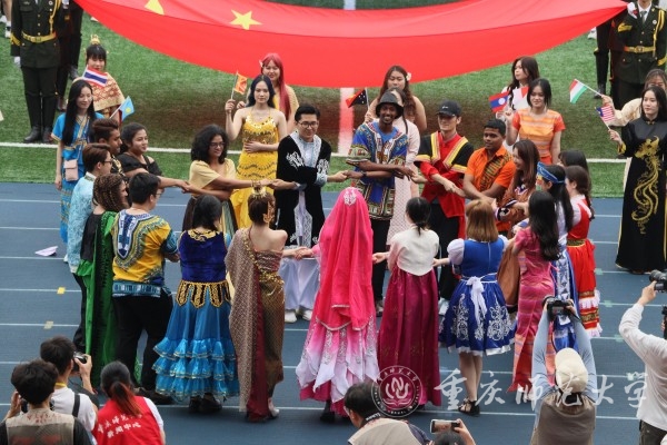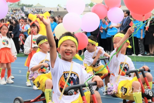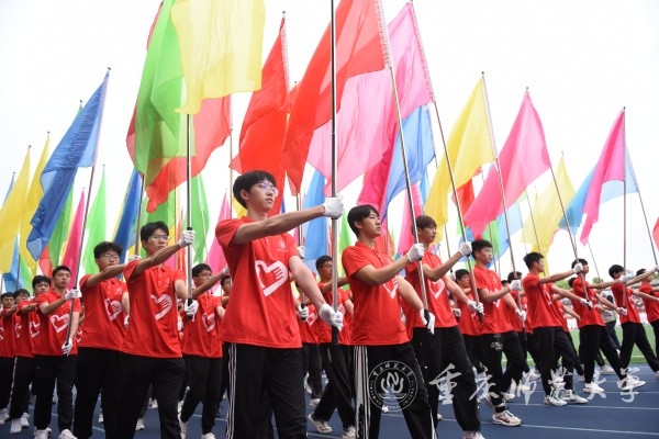 运动场内热情洋溢,喝彩连连。伴随着阵阵鼓点和《运动员进行曲》,国旗护卫队、校旗队、彩旗队和标语方队迈着矫健的步伐依次进入会场,走过主席台。27个风格各异的方阵,27支满腔热忱的队伍。