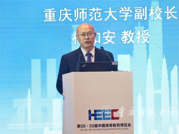 中国高等教育学会第七届理事会副秘书长、《中国高教研究》主编王小梅,重庆市高等教育学会副会长黄大勇、米乐官网党委书记曾礼、华中师范大学副校长彭双阶、山东师范大学副校长张茂聪、米乐官网副校长杨如安、云南师范大学副校长陈正权、宁夏师范学院副院长钟正平、科大讯飞股份有限公司高教人才培养业务总裁胡江院等领导专家出席大会,来自中国高等教育学会、全国各高校、公司的一百八十余名专家学者参加线下会议。论坛同步线上直播,观看人数达十二万人次。论坛开幕式由杨如安主持。