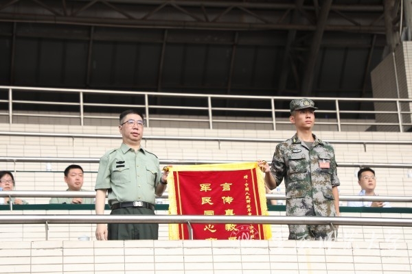 汇演结束后,黄永宜宣读了军训先进连队、优秀科目展示方队、优秀指导员表彰通令。孟东方代表学校向承训部队赠送锦旗,表达了对承训官兵的衷心感谢和高度赞扬。