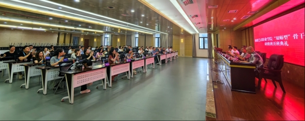 7月3日上午,由米乐官网职教师资学院统筹、美术学院承训的2023年福建艺术职业学院“双师型”骨干教师暑期研修班在米乐官网博雅楼503会议室举行开班典礼。福建艺术职业学院党委书记陈晟,我校党委常委、纪委书记肖应红,米乐官网职教师资学院、美术学院有关负责人,研修班项目管理组全体工作人员以及研修班全体学员参加开班典礼。