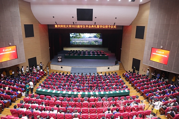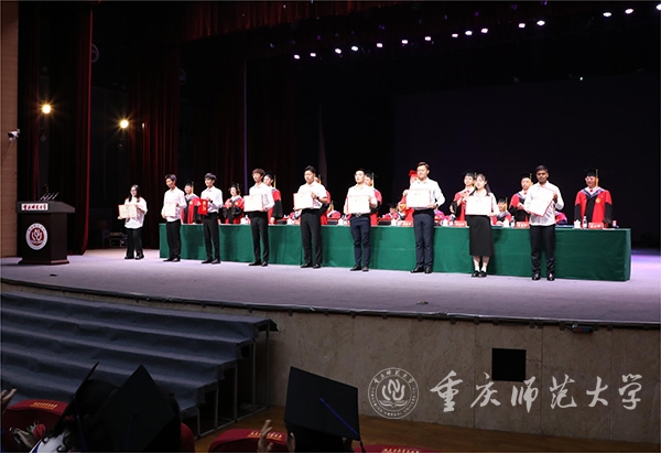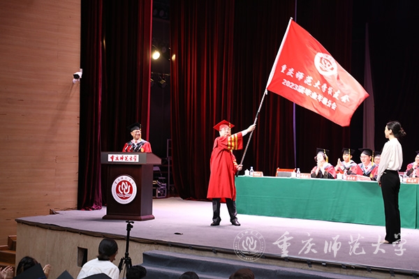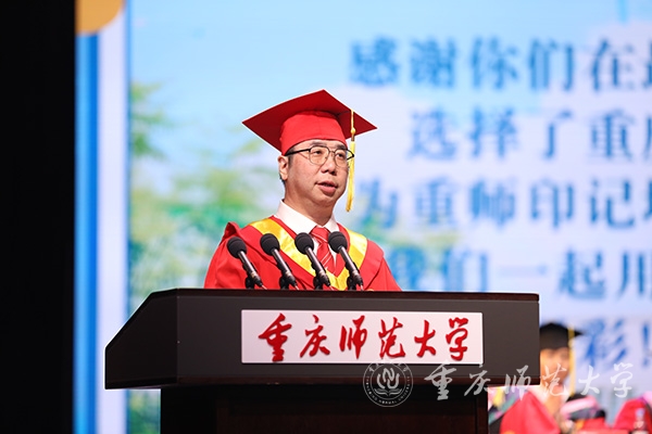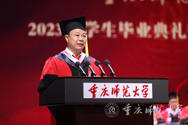 庄严肃穆的《中华人民共和国国歌》奏唱完毕后,校党委书记曾礼教授宣读《重庆市优秀毕业生表彰决定》,他勉励同学们珍惜荣誉,在新的征程上踔厉奋发、勇毅前行,取得更大的成绩。