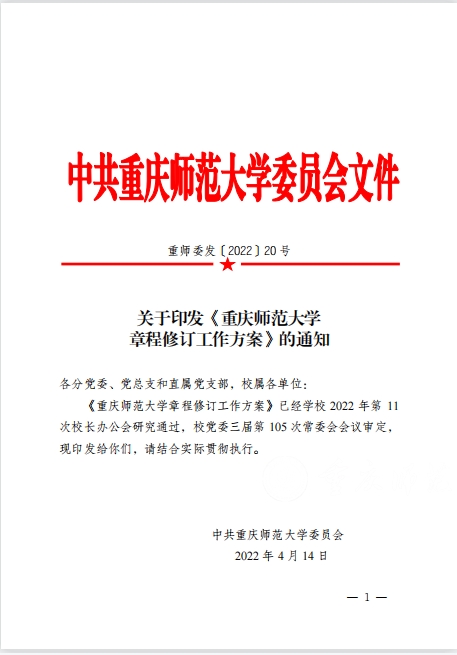 进入新时代,高等教育发展面临新形势,高等学校章程所依据的法律法规、政策制度以及学校自身所处发展阶段和发展实际均发生重大变化。为全面贯彻落实党的教育方针,进一步健全现代大学制度,推进依法治校、科学发展和民主管理,学校党委行政作出对章程进行适当修改的重大决策,要求严格按照教育部《高等学校章程制定暂行办法》(教育部第31号令)、教育部办公厅《关于启动新一轮高等学校章程修订工作的通知》(教政法厅函〔2021〕17号)以及《重庆市教育委员会关于做好新一轮学校章程修订工作进一步加强学校章程建设和管理的通知》(渝教策发〔2021〕6号)等相关文件精神和要求,高质量高标准开展章程修订。