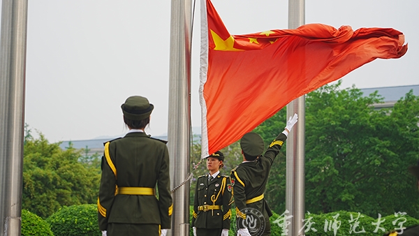 上午8:00,国旗班队员们迈着整齐而坚定的步伐护送五星红旗入场。伴随着庄严的国歌声,五星红旗在习习晨风中冉冉升起。全体师生行注目礼,礼毕,全体肃立,深切缅怀“时代楷模”王红旭烈士牺牲两周年。