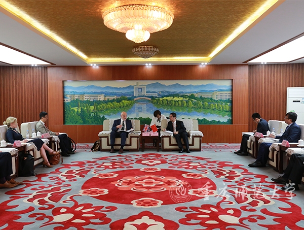 会前,校长孟东方会见乔治·泰伯特一行,双方围绕中英生物科学联合培养项目及英国知山大学孔子学院等合作事宜进行会谈。