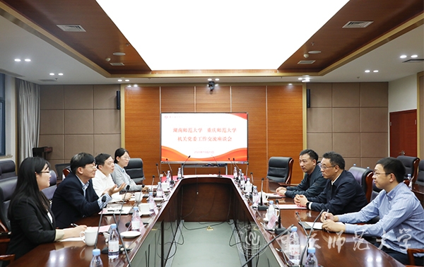 会上,张明简要介绍了湖南师范大学机关党委工作情况,重点分享了湖南师范大学机关党委领导干部下沉一线的经验和做法。张明志介绍了米乐官网机关党委基本情况,重点就机关党委设置、支部作用发挥、党员干部担当作为等方面进行了详细介绍。双方还围绕机关党建提质增效、机关党建与业务深度融合、机关党支部标准化规范化建设、机关部门党建与思政考核、工作作风考评与激励等方面进行了探讨交流。