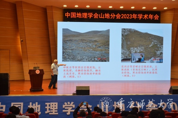 特邀报告环节,日本工程院外籍院士、福州大学建筑与城乡规划学院院长沈振江教授,中国地理学会山地分会顾问、中国科学院、水利部成都山地灾害与环境研究所张信宝研究员,中国地理学会山地分会顽问、中国科学院西北生态环境资源研究院丁永建研究员,国家自然科学基金海外杰青、中国海洋大学邢会林教授,中国地理学会山地分会主任、俄罗斯自然科学院外籍院士、中国科学院、水利部成都山地灾害与环境研究所陈宁生研究员,国际地理联合会岩溶委员会副主席、国家高层次人才特殊支持计划青年拔尖人才、米乐官网地理与旅游学院蒲俊兵研究员分别作题为“山地与水资源影响下的国土形态”“青藏高原高原面地貌稳定态与高原隆升速率”“冰冻圈水文学简述”“多尺度多场耦合计算地学及其山地灾害领域的潜在应用”“关于山区减灾与生态环节保护的决策咨询”“中国岩溶关键带:结构、特征、底界及分区”的学术报告。