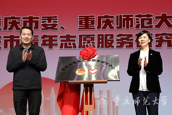 廖传锦、张艳为重庆市青年志愿服务研究中心揭牌