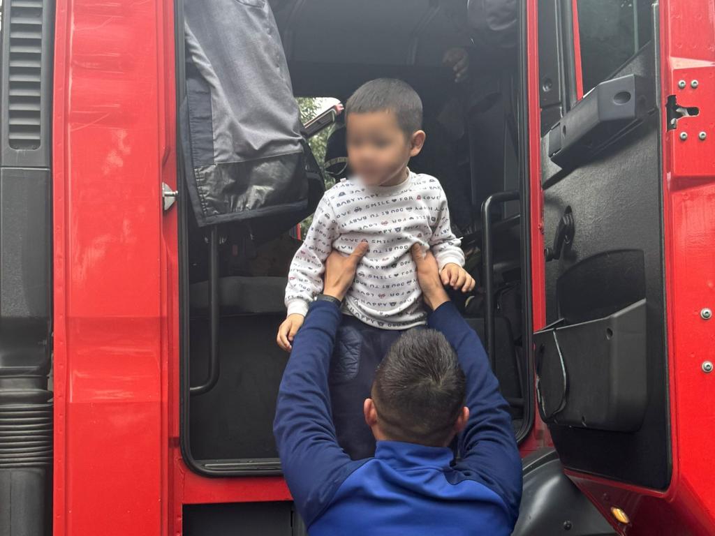 消防员们以通俗易懂的语言,结合生动有趣的演示,详细讲解了消防车上灭火器、液压剪等各类工具的功能用途,小朋友们认真聆听并踊跃举手提问。讲解结束后,小朋友们登上消防车驾驶座,在消防员指导下体验车辆操作,兴奋地模拟“出警”场景。身着特制迷你消防服的“小小消防员”们,通过穿戴装备讲解环节,深入了解了消防服耐高温、防穿刺的特殊功能,对消防员的专业装备有了更深入的认识。