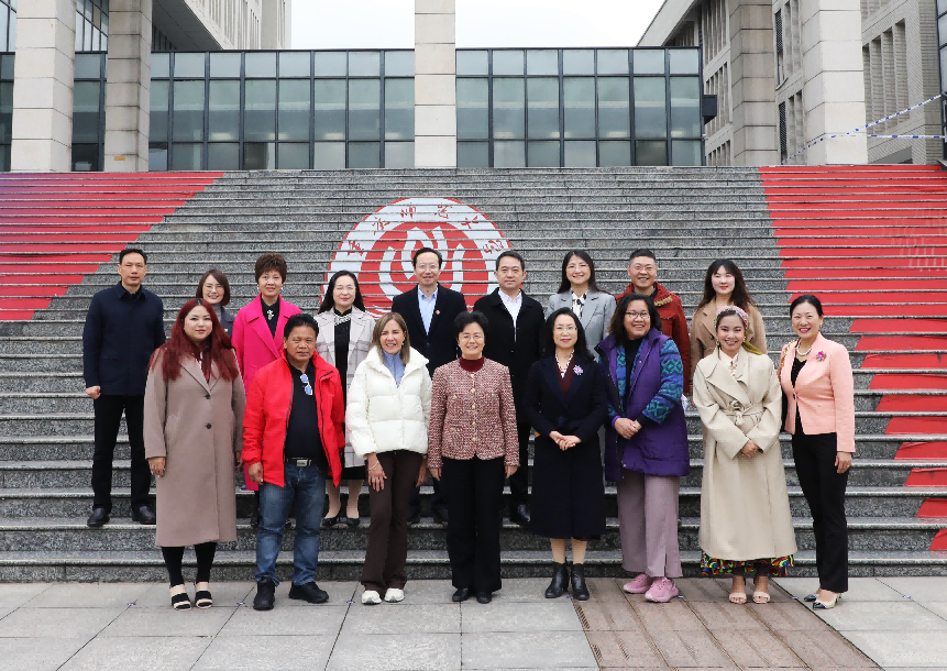 3月18日,沙坪坝区政协副主席郭文荫带领菲律宾来访团到米乐官网交流华文教育工作。党委副书记周学馨会见菲律宾来访团一行。