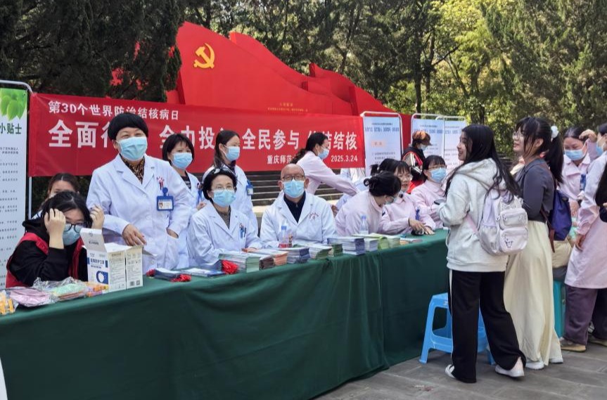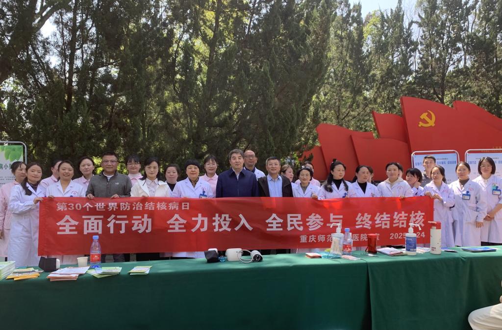 3月24日,在第30个“世界防治结核病日”来临之际,为增强师生预防和主动筛查意识,降低校园结核病传播风险,校医院联合结核病定点医疗机构青木关中西医结合医院,在学校宣誓墙前举办“世界防治结核病日”宣传活动。副校长付文升及后资处主要负责人参加活动。