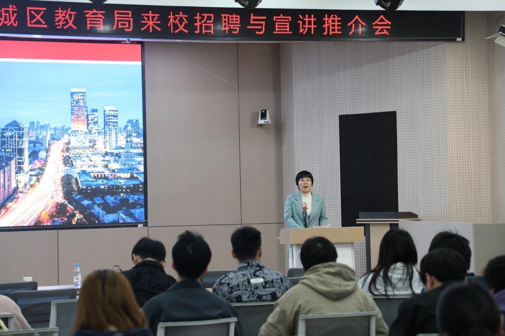 陈秀从区域发展、教育生态、政策支持等多维度展开推介。她指出,惠城区依托区位优势和经济活力,持续加大教育投入,不断优化教师成长环境,目前已成功构建起涵盖学前教育、基础教育、特殊教育及教师成长平台的立体化教育体系,并配套薪酬保障、住房政策、职业发展等优厚条件,着力打造青年教师成长生态圈。她表示,希望双方以此次合作为契机,吸引更多人才投身惠城区,助力区域教育实现高质量发展。