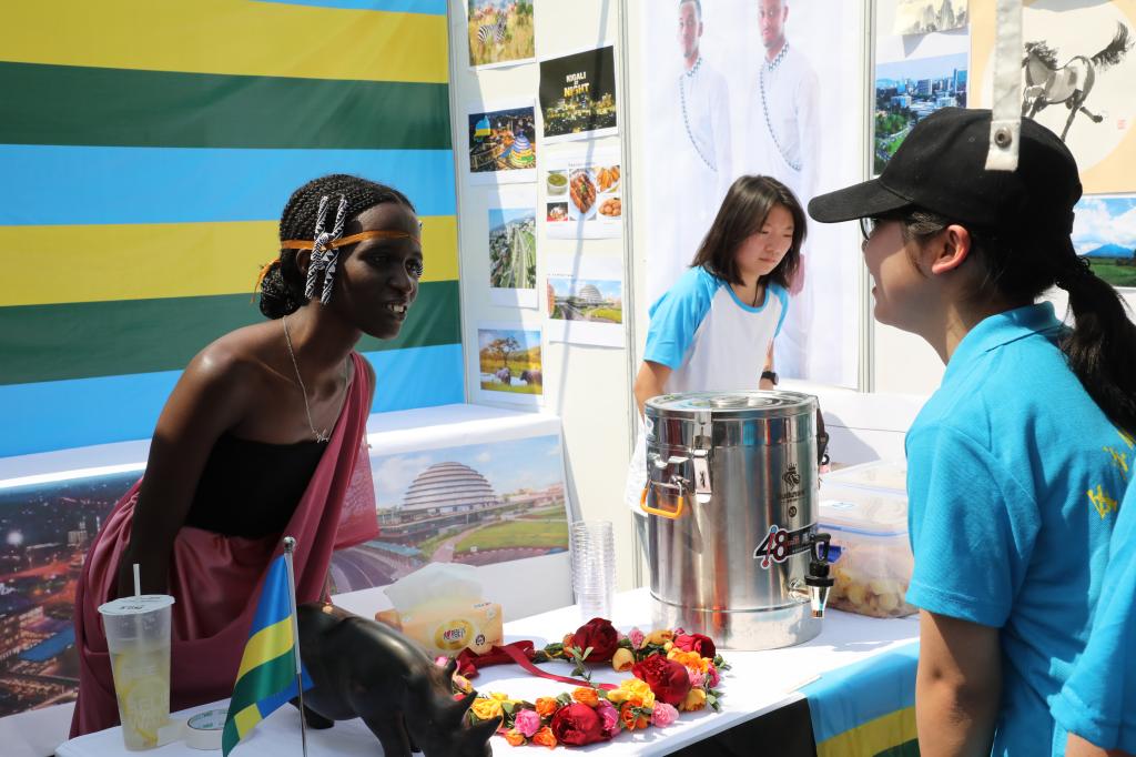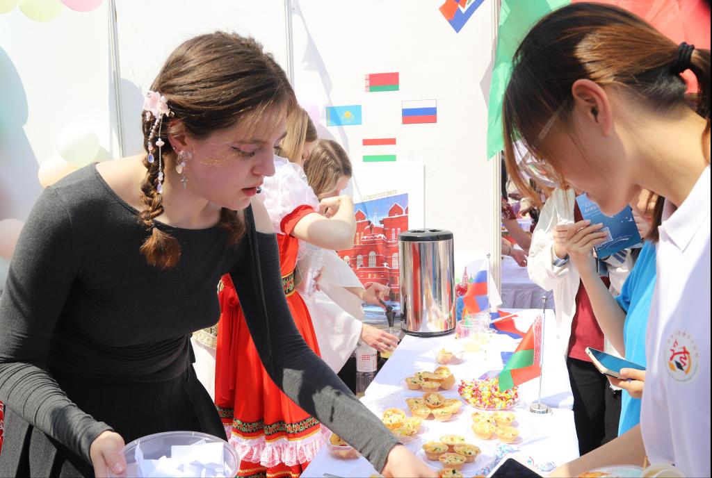 开幕式上,学校中外师生带来了精彩的文艺表演。活动现场设立了国际文化游园展览区,来自俄罗斯、泰国、老挝、斯里兰卡等不同国家的留学生代表将异域美食、民俗文化带到现场,“泰好吃挝”“语萃中西”“墨舞丹青”“语萃中西”等展位前人头攒动,来自不同国别、不同民族的重师学子,化身“文化交流使者”,欢聚一堂,载歌载舞。