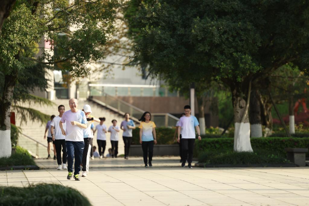 仪式结束后,协会成员们沿三春湖环道开启首次集体健身跑活动。数学科学学院张新功教授感慨:“这条路线串联起教学区、景观区,奔跑中既能感受校园春色,又能感悟校园文化。”