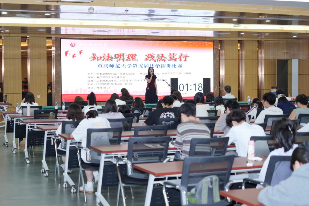 为深化法治教育内涵,增强大学生法治意识,激发青年学子学法、守法、用法的主动性积极性,5月15日下午,由党委政策研究室(发展规划处)、党委学生工作部、校团委和马克思主义学院联合举办的“知法明理,践法笃行”第五届大学生法治演讲比赛在博雅楼503举行。
