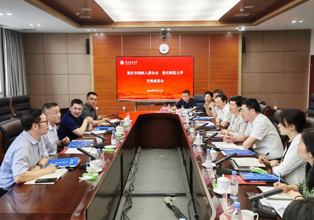 5月22日上午,重庆市残疾人联合会党组书记、理事长阳秋冬一行来校调研并开展座谈交流,学校党委书记张艳,党委副书记、校长王国胤参加座谈会。党委常委、副校长孟小军主持会议。
