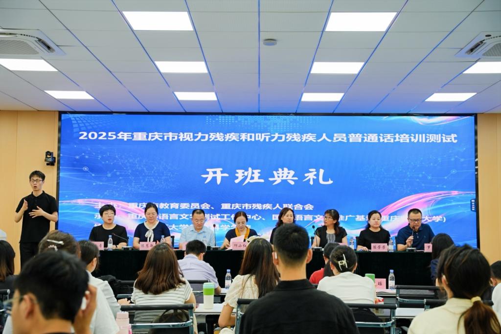 5月24日上午的开班典礼上,重庆市教委教材和语言文字管理处处长邱小红指出,手语和盲文作为国家通用语言文字的重要组成部分,其规范化推广是深化社会融合的重要举措。自2016年起,重庆市累计完成49名视障人士、166名听障人士的普通话测试,并培养了听障测试员1名、听视障考务人员2名,为国家通用语言文字普及残障群体就业提供了有力支持。重庆市残联教育就业部主任文海青强调,推广通用手语和盲文不仅是社会关爱的体现,更是推动残障人士融入社会的重要途径。