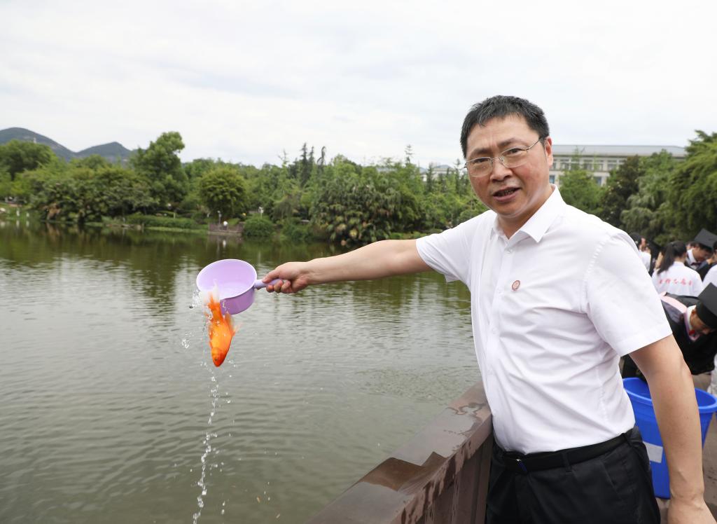 自今年五月起,学校校友会以 “青春与重师” 为主题,陆续推出毕业生祝福语征集、为毕业本科生和研究生赠送专属纪念品、成立毕业年级校友分会等系列活动。作为毕业季的压轴环节,鱼苗投放活动以 “前程似‘锦’”“鹏程万‘鲤’” 的谐音巧思,承载着母校对毕业生的殷切期许。