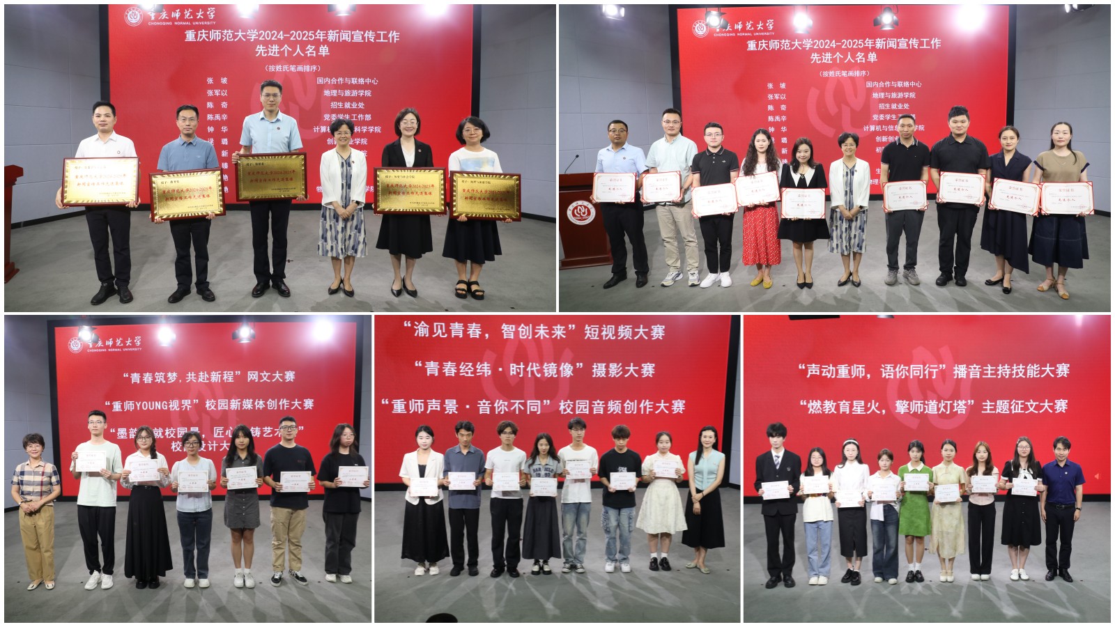 据悉,本届新闻宣传活动月共有3000余人次参与,收到作品1000余件,评选出360件获奖作品。学校各二级单位负责人,“重师学工、重师研究生、重师青年、重师校友”微信公众号学生负责人,获奖师生代表参加闭幕式。
