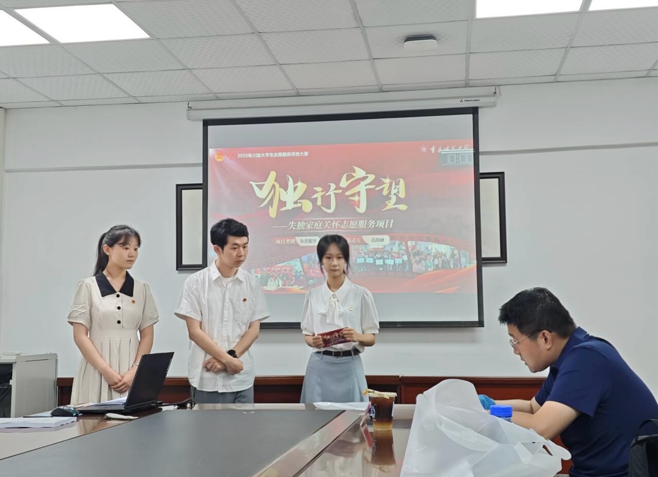 “独”行守望——失独老人关怀志愿服务项目团队以“志愿服务专业化”为驱动,秉持“温情善治,共护夕阳”理念,专注服务重庆市失独老人,致力于构建老龄化友好社会环境。项目构建“志愿服务+专业知识”培训体系,搭建“核心志愿者+协作志愿者”双层架构,以社会工作理论为指导,打造“代际+代内”双轨服务模式,代际服务中核心志愿者经专项培训开展“四维关怀行动”,代内服务中核心志愿者策划、协作志愿者执行。项目成果显著,累计开展140场活动,服务1300余人,入户超1120次,志愿服务时长11910小时。团队1人获“重庆市五星级志愿者”,30余人受表彰,活动获国家级、省市级媒体10余次报道,获广泛认可。