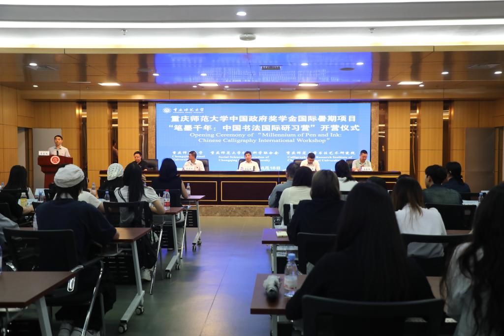 国际合作与交流处、初等教育学院、项目负责人及项目组团队成员、全体参研国际学员和初等教育学院书法系学生参加开营仪式。