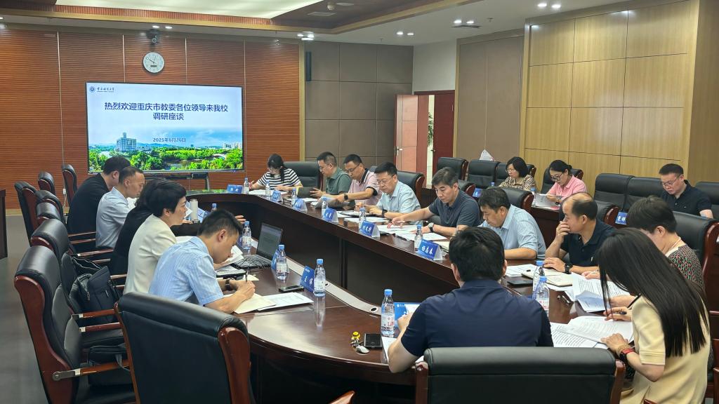 6月26日上午,重庆市教委科技处处长刘畅带队来校开展“教育强市区县行”专题调研并召开专题工作会。会议在博雅楼501会议室举行,市教委科技处副处长杨鸿主持会议,学校副校长付文升出席会议。