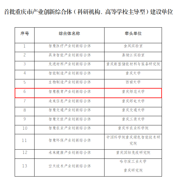 近日,重庆市科学技术局、重庆市经济和信息化委员会联合发布了《关于公布首批重庆市产业创新综合体(科研机构、高等学校主导型)建设单位名单的通知》,米乐官网成功获批建设“智慧教育产业创新综合体”(以下简称“综合体”)。
