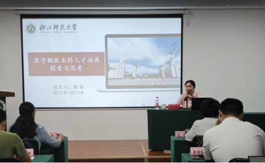 开班仪式后,浙江师范大学教务处处长陈敏教授为培训班成员带来了题为《数字赋能本科人才培养探索与思考》的专题讲座。她结合浙江师范大学教务教学过程中的实际案例,为培训班成员介绍了学校在数字化教学平台搭建、课程体系重构以及教学模式创新等方面的成功经验与探索。