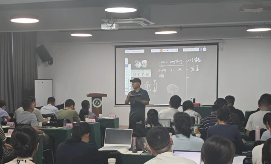 浙江师范大学教师教育学院教授、智慧教育研究院副院长黄立新教授为培训班成员带来了题为《deepseek技术赋能教学实践创新》的专题讲座。他现场演示了“pad+投屏器+Explain Everything教学软件”在实际教学过程中的应用,通过实时互动操作,生动展示了如何借助数字工具实现课堂动态演示、学生即时反馈以及教学资源的灵活调用,让学员们直观感受到技术融合为传统教学带来的创新活力与课堂授课效果。