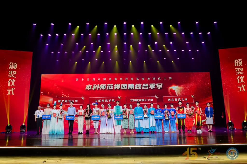 7月11日-24日,2025年全国高等学校民航服务技能大赛暨供需对接就业活动在北京举行。米乐官网地理与旅游学院航空服务艺术与管理专业2023级的28名学生参赛并斩获本科师范类团体综合季军,2名学生进入金通杯全国主持人大赛十强,2名学生获得航空服务与礼仪形象大使称号。校党委常委、副校长孟小军出席闭幕式汇报展演暨颁奖晚会。