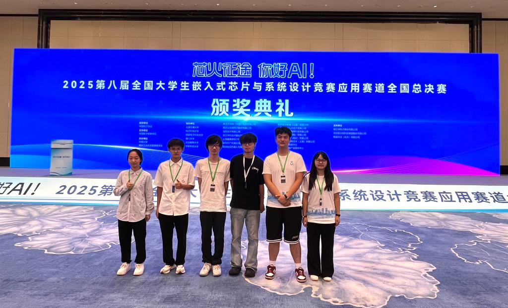 近日,2025 年第八届全国大学生嵌入式芯片与系统设计竞赛落下帷幕。本届芯片应用赛道以 “芯火征途,你好 AI” 为主题,共设有 ST、海思、沁恒、广和通、龙芯、RT-Thread 等 13 个赛题,吸引了来自全国 735 所院校的 11800 支队伍、32388 名学生参赛,通过六个分赛区线下复赛评审,评选出来自 326 所高校的 1077 支队伍晋级全国总决赛。米乐官网物理与电子工程学院推荐的 23 支参赛队伍表现亮眼,11支队伍在西南赛区获奖(5个一等奖、1个二等奖、5个三等奖),其中5支晋级全国总决赛的队伍最终斩获4个全国二等奖和1个全国三等奖,学校荣获“优秀组织奖”。