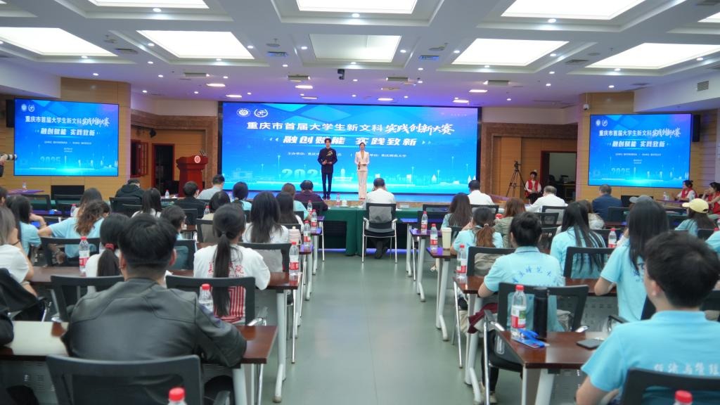 作为重庆市首届大学生新文科实践创新大赛,赛事以“融创赋能,实践致新”为主题,聚焦国家战略和经济社会发展需求,旨在激发大学生创新思维和实践能力,推动高校文科人才培养实质性“脱虚向实”,将人才“软实力”转化为高质量发展的“硬支撑”。