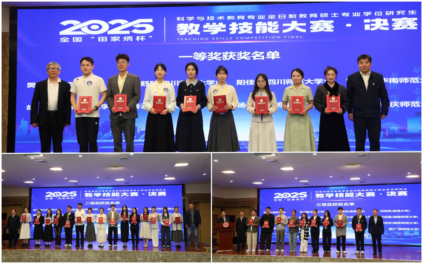 我校参赛的4位科学与技术教育专业研究生凭借扎实的专业功底、创新的教学设计以及出色的现场发挥取得优异成绩,何伍芸同学(指导教师:林长春)荣获一等奖,冉茂浇同学(指导教师:首新)、刘龙诗同学(指导教师:林长春)荣获二等奖,胡梦洁同学(指导教师:徐彩霞)荣获三等奖。