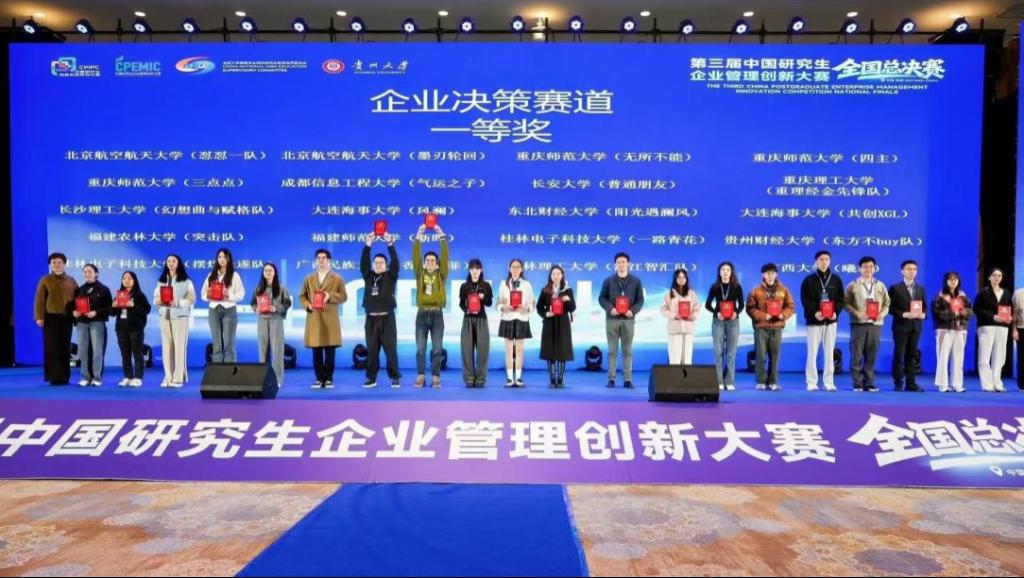 11月7-9日,第三届中国研究生企业管理创新大赛决赛在贵州贵阳举办,米乐官网经济与管理学院学子在晋级企业决策赛道的245支队伍中表现优异,荣获企业决策赛道一等奖三项、二等奖两项。