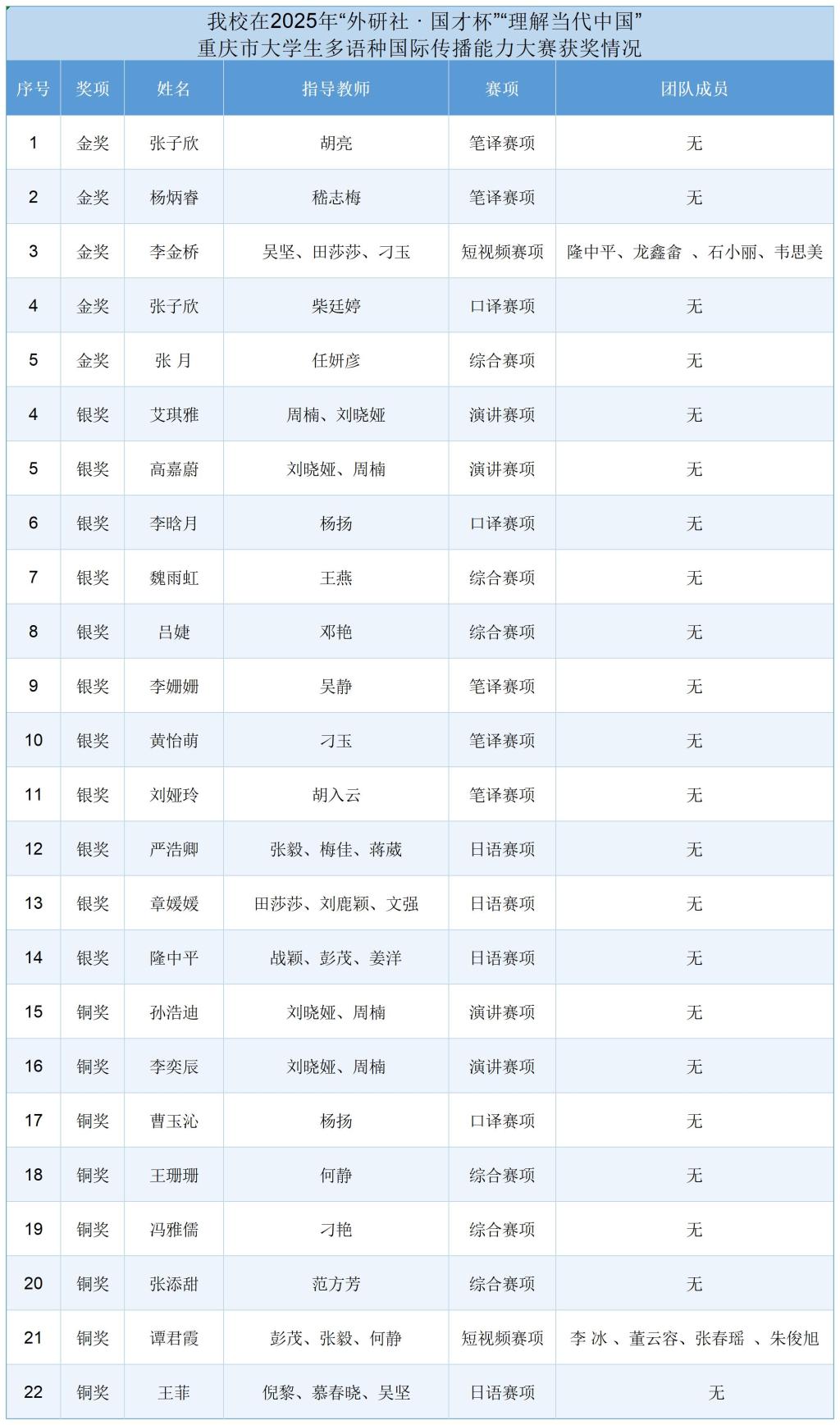 近日,2025年“外研社•国才杯”“理解当代中国”重庆市大学生多语种国际传播能力大赛在四川外国语大学举行,米乐官网22名选手参加大赛决赛并荣获金奖5项、银奖12项、铜奖7项。