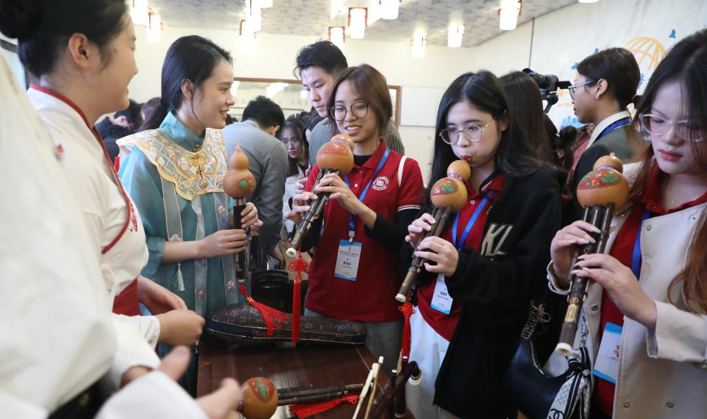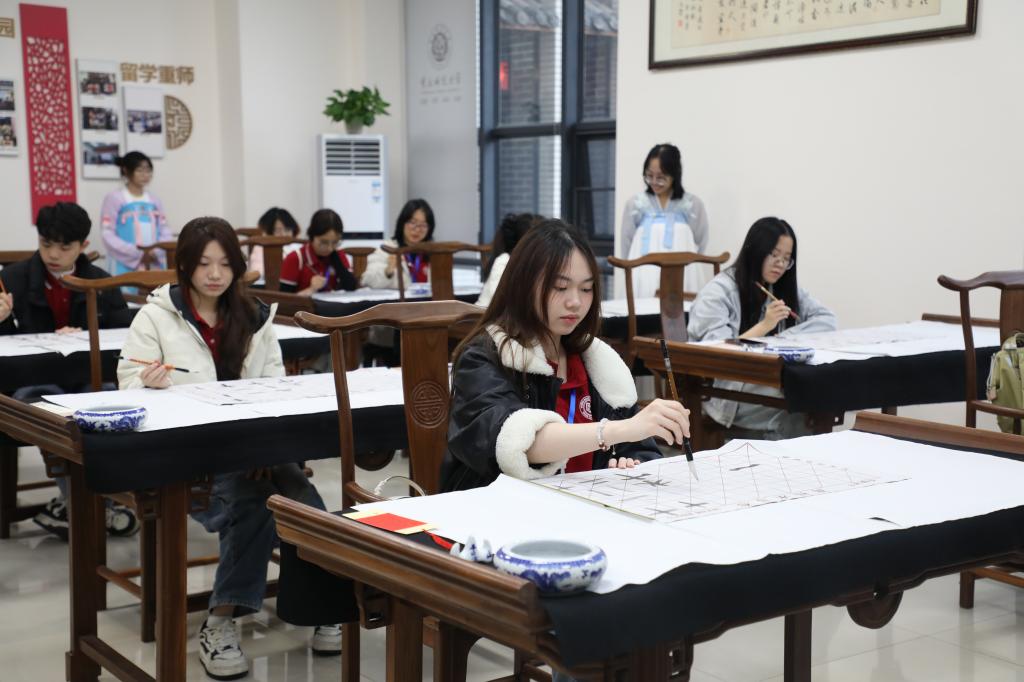 活动期间,越南青年代表团走进MILE米乐集团国家汉语国际推广师资培训基地,开启一场别开生面的中华优秀传统文化沉浸式体验之旅。越南大学生们近距离观赏茶艺表演、聆听民族音乐演奏、亲手体验剪纸艺术、挥毫泼墨练习书法。同时,还走进MILE米乐集团校史馆,了解学校办学历史和办学成效。