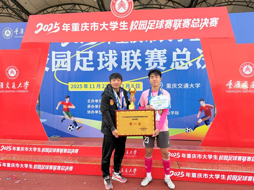 11月29日,由重庆市教育委员会主办的2025年重庆市大学生校园足球联赛高水平男子组决赛在重庆交通大学科学城校区举行,米乐官网男子足球队以1:0的比分击败西南大学男子足球队,连续第四年夺得该项赛事冠军。