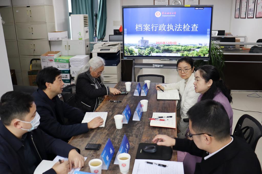 陈辉介绍了档案行政执法检查的目的、内容和流程。他表示,档案行政执法检查是贯彻落实习近平总书记关于档案工作的重要指示批示精神,严格执行《中华人民共和国档案法》《中华人民共和国档案法实施条例》的关键措施,也是推进档案治理现代化、提升档案工作效能的必然要求。希望学校以检促建,进一步加强档案管理工作,提升依法管档治档水平。