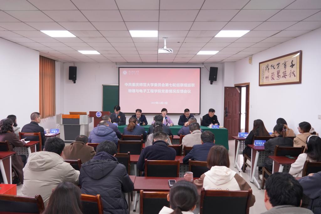 学校党委巡察工作领导小组成员、巡察办相关人员、第七轮巡察组及物理与电子工程学院全体教职工参加会议。