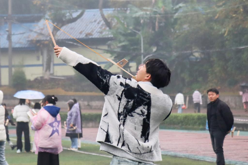 本次科技运动会是学校第十八届学生学术科技文化节的系列活动之一,由校团委、创新创业学院主办,初等教育学院承办,共设八个竞赛项目,融合了团队协作与个人挑战两大板块。团队竞技项目包括水火箭发射、落体缓冲降落、抛石机攻城战及机器人综合技能展示,个人竞技项目涵盖电子百拼活动、弹射模型飞机、无线电测向、气弓箭等多种类型。