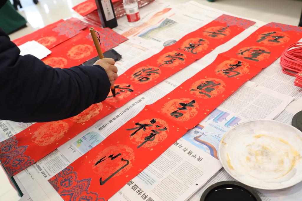 活动特邀学校书法教师杨祖涛、贺华挥毫泼墨,以笔墨为媒传递新春祝福。大红宣纸整齐铺开,墨香与年味交织弥漫,老师们凝神运笔,笔锋或刚劲洒脱,或温润流畅,一个个饱满喜庆的“福”字跃然纸上,一副副蕴含师道情怀与美好愿景的春联随笔而生。“骏业腾飞承师道,春风浩荡育桃李”“立德树人传薪火,笃行致远启新程”“三尺讲台存日月,一支粉笔写春秋”,字字句句既饱含对马年顺遂的期许,又彰显师范院校立德树人的初心使命。教职工们驻足观摩、有序挑选,拿到心仪的春联与福字时满脸笑意,纷纷称赞手写作品承载的温度与文化底蕴。